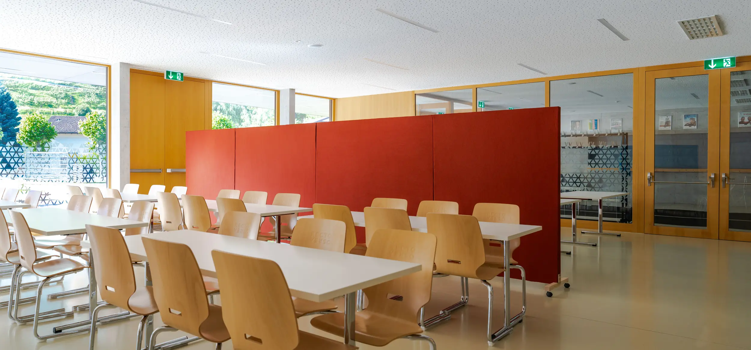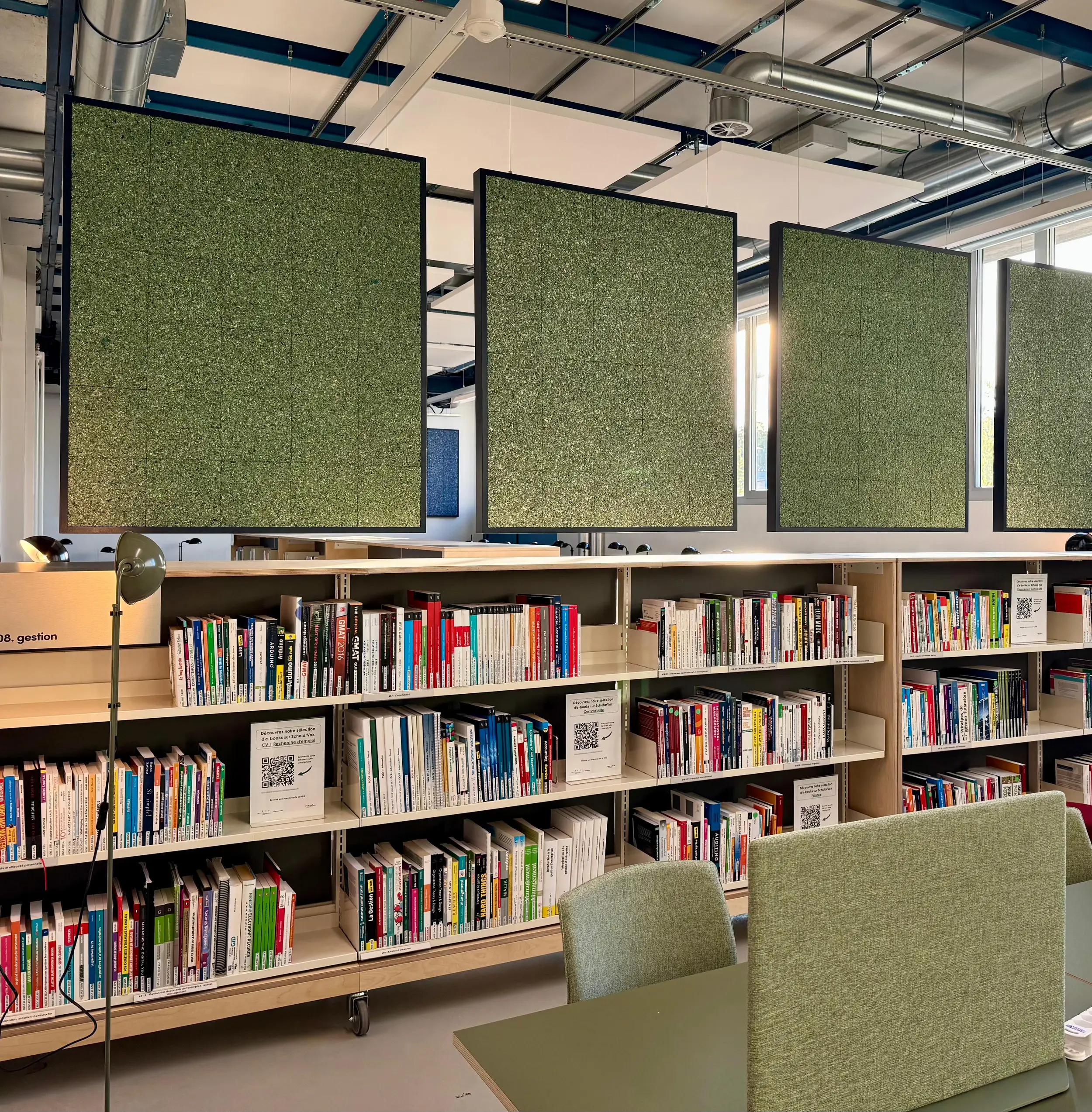 Nos solutions acoustiques en textile recyclé, fabriquées en Suisse, rendent vos espaces plus calmes et confortables.